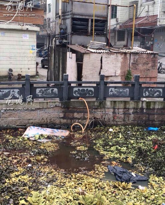河道有十来米宽,里面长满了生命力超强的水葫芦。记者发现,从制冰厂旁边开始,一直延伸到200米开外,整段河道里的水葫芦全都枯死了。零星的鱼翻着肚皮,漂在水面上。