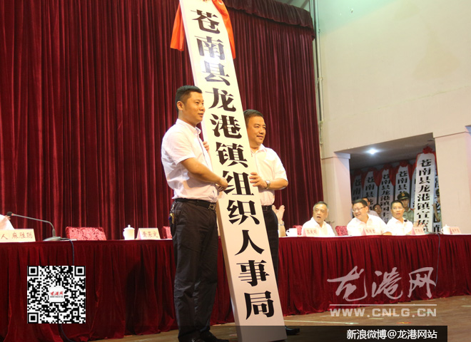 龙港网6月4日讯:今天上午,苍南县龙港镇15个“大部门”正式挂牌成立,这意味着龙港新型城镇化试点中的行政体制改革架构完成初步搭建,龙港“镇改市”迈入新阶段。
