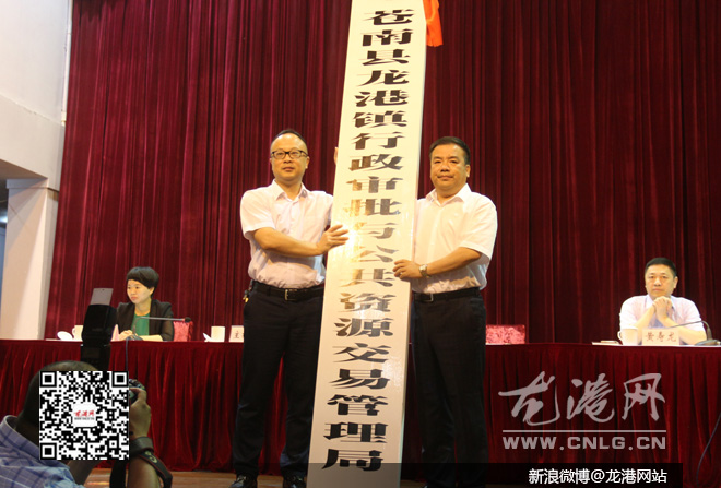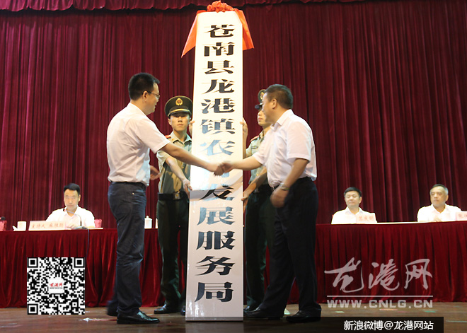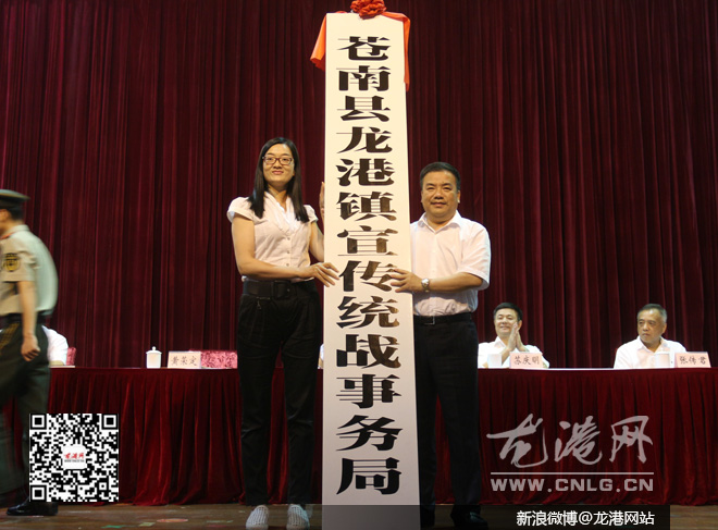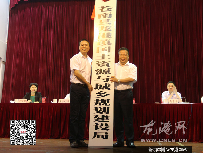 授牌仪式上,苍南县委常委、龙港镇委书记丁振俊通报了龙港国家新型城镇化综合试点工作进展情况,县长黄荣定为15个“大部门”授牌。当天上午,龙港设市筹备工作领导小组成立。