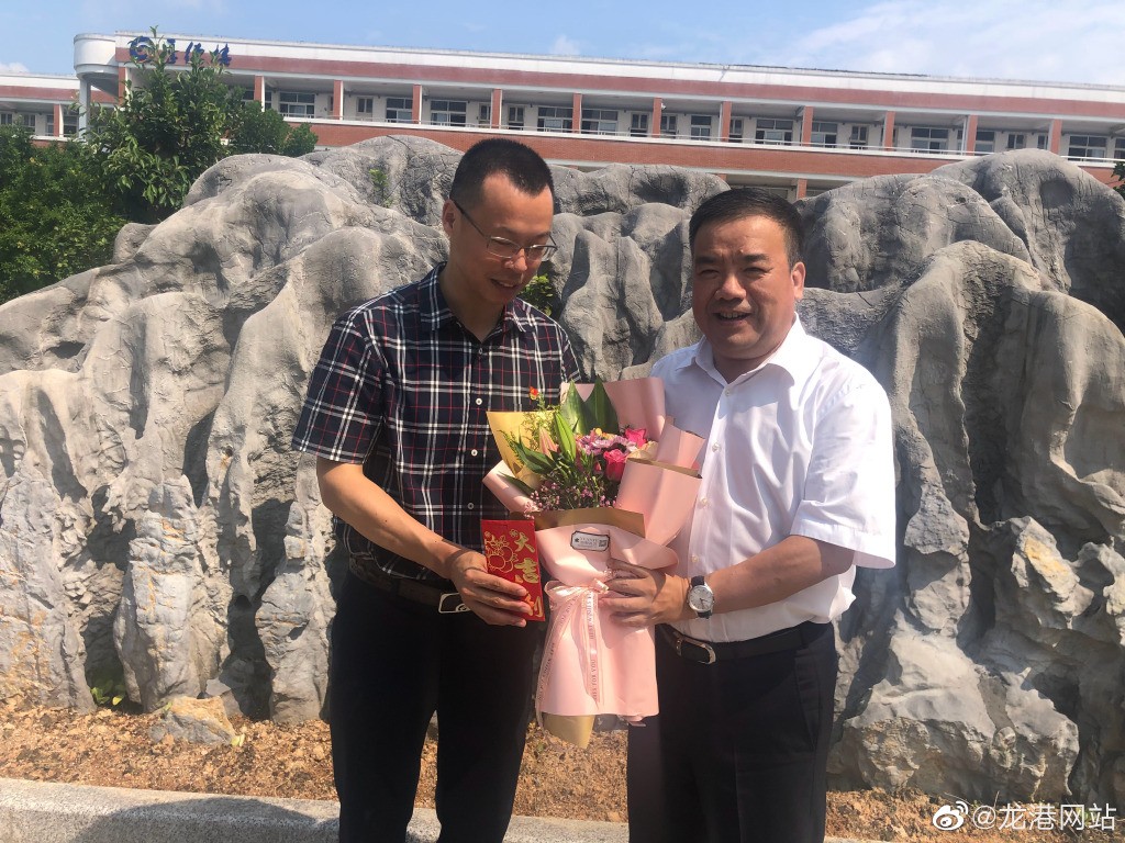 在第35个教师节来临之际,9月9日上午,苍南县委书记黄荣定一行专程来到龙港高级中学、龙港第一中学、龙港第九小学,亲切慰问市名班主任、县名校校长、县名教师,了解他们生活工作状况,并送上教师节最真挚的祝福!他希望名师能热爱工作,热爱学生,做“四有”好教师!县委常委、副县长陈晓,县委常委、龙港镇委书记陈为来,副县长曾云玲等陪同。