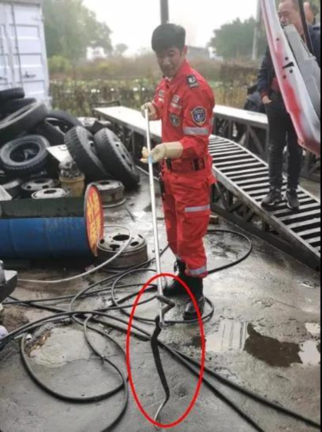 2021年1月21日下午4点50分,龙港市博德救援中心接到云岩片区某汽车修理厂老板的求助电话:“称其修理厂大门旁边有条很大的眼镜蛇急须帮忙处理。”