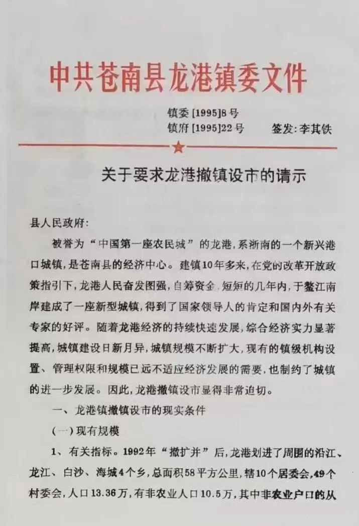写在龙港设市三周年 | 李其铁:龙港从建镇到设市艰难历程的回顾